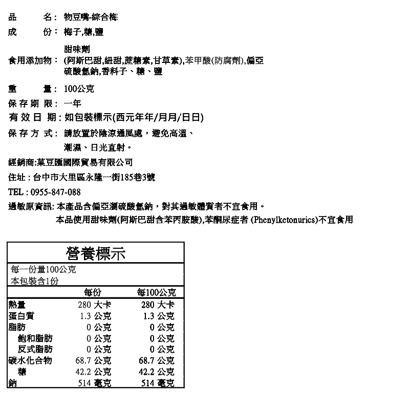 品名:【物豆嘴】綜合梅李 100g