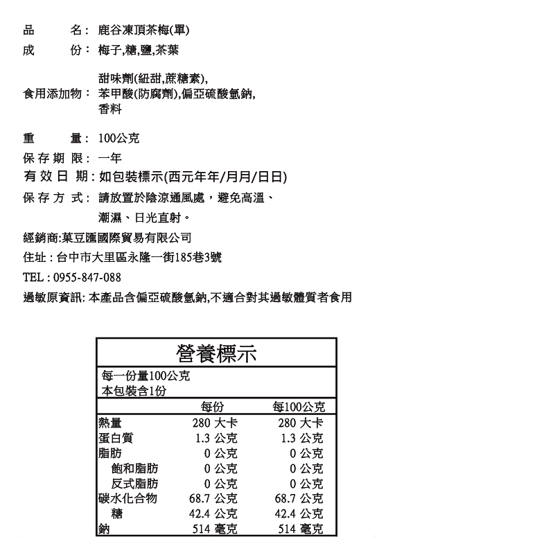 【物豆嘴】鹿谷凍頂茶梅 100g