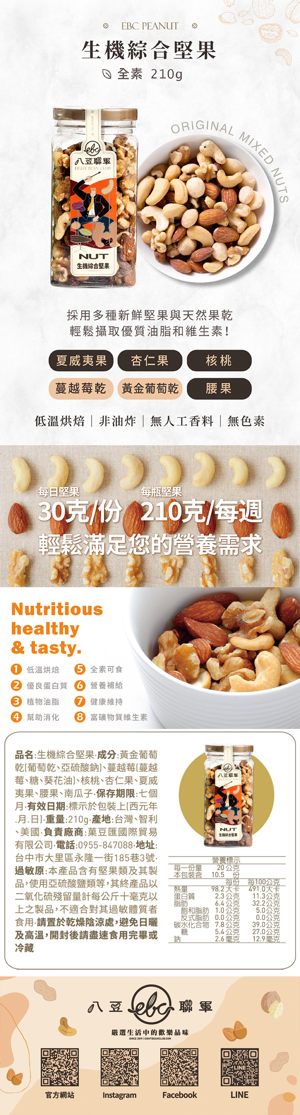 ✔ 嚴選夏威夷果、核桃、腰果、蔓越莓、黃金葡萄乾